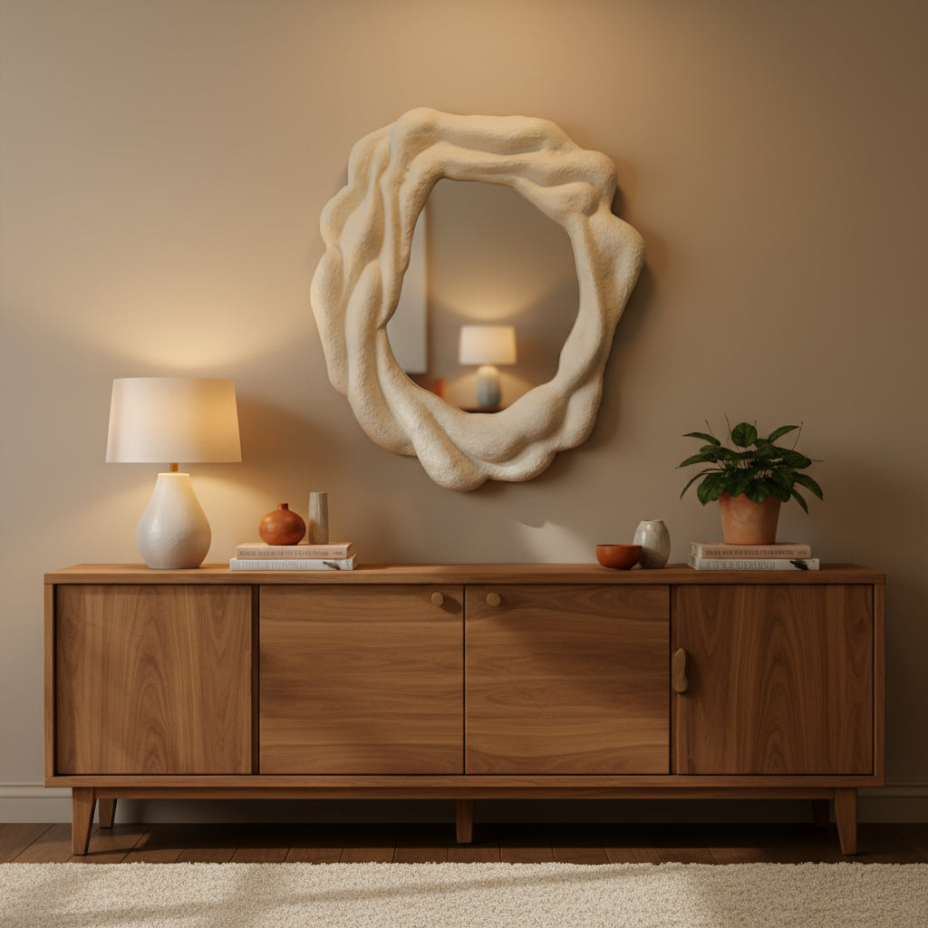 A sculptural mirror inspired by organic movement and natural textures.