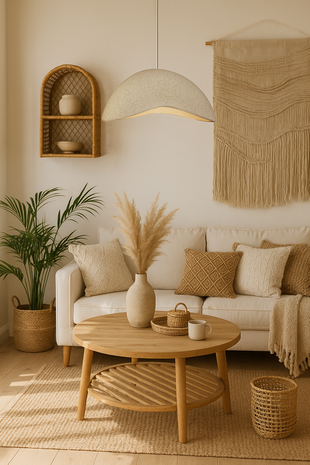 Modern fiberglass pendant light. Lightweight, durable, and perfect for adding elegance to any room.